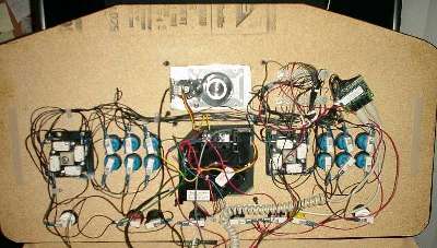 The buttons & joysticks are interfaced with an LP24, and both the spinner & trackball are interfaced through hacked mice. I used a variation of the standard 2x22 matrix. It also has an Infra-red wireless keyboard that tucks away nicely on top of the cabinet. I had the keyboard already, or I would have bought an RF model.
